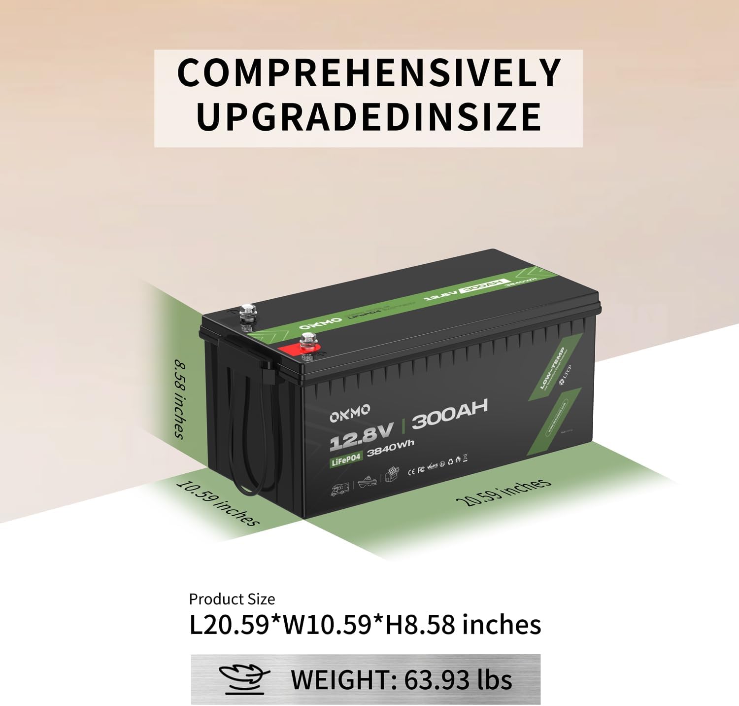 - Note: The OKMO 300Ah LiFePO4 battery is perfect for RV, Boat, Trolling Motor, Fish Finders, Ice Fishing, Camping, Solar System, and Home Alarm Systems