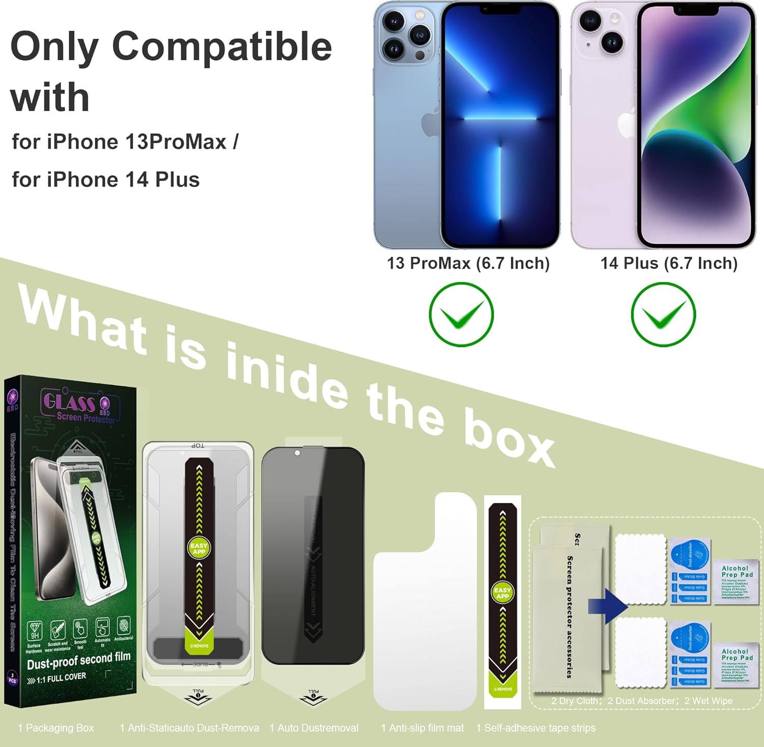 - Auto Dust Removal & Easy Installation: The SY SHANGYAN Anti-Spy Privacy Screen Protector for iPhone 13 Pro Max/14 Plus features advanced auto dust removal and self-aligning technology for a flawless,bubble-free install every time.Just place the frame,pull the tab,and press to push out any air bubbles.Installation is quick,easy,and hassle-free.For best results,watch our step-by-step installation video before applying