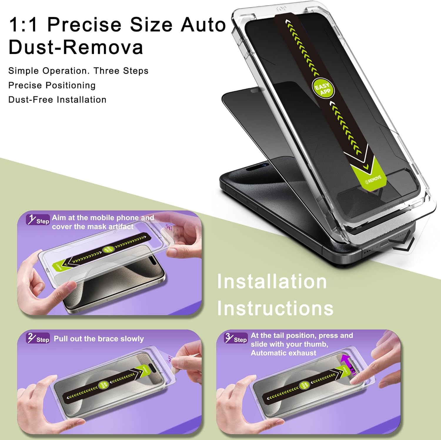 - Auto Dust Removal & Easy Installation: The SY SHANGYAN Matte Privacy Anti-Spy Screen Protector for iPhone 16 Pro features advanced auto dust removal and self-aligning technology for a flawless,bubble-free install every time.Just place the frame,pull the tab,and press to push out any air bubbles.Installation is quick,easy,and hassle-free.For best results,watch our step-by-step installation video before applying