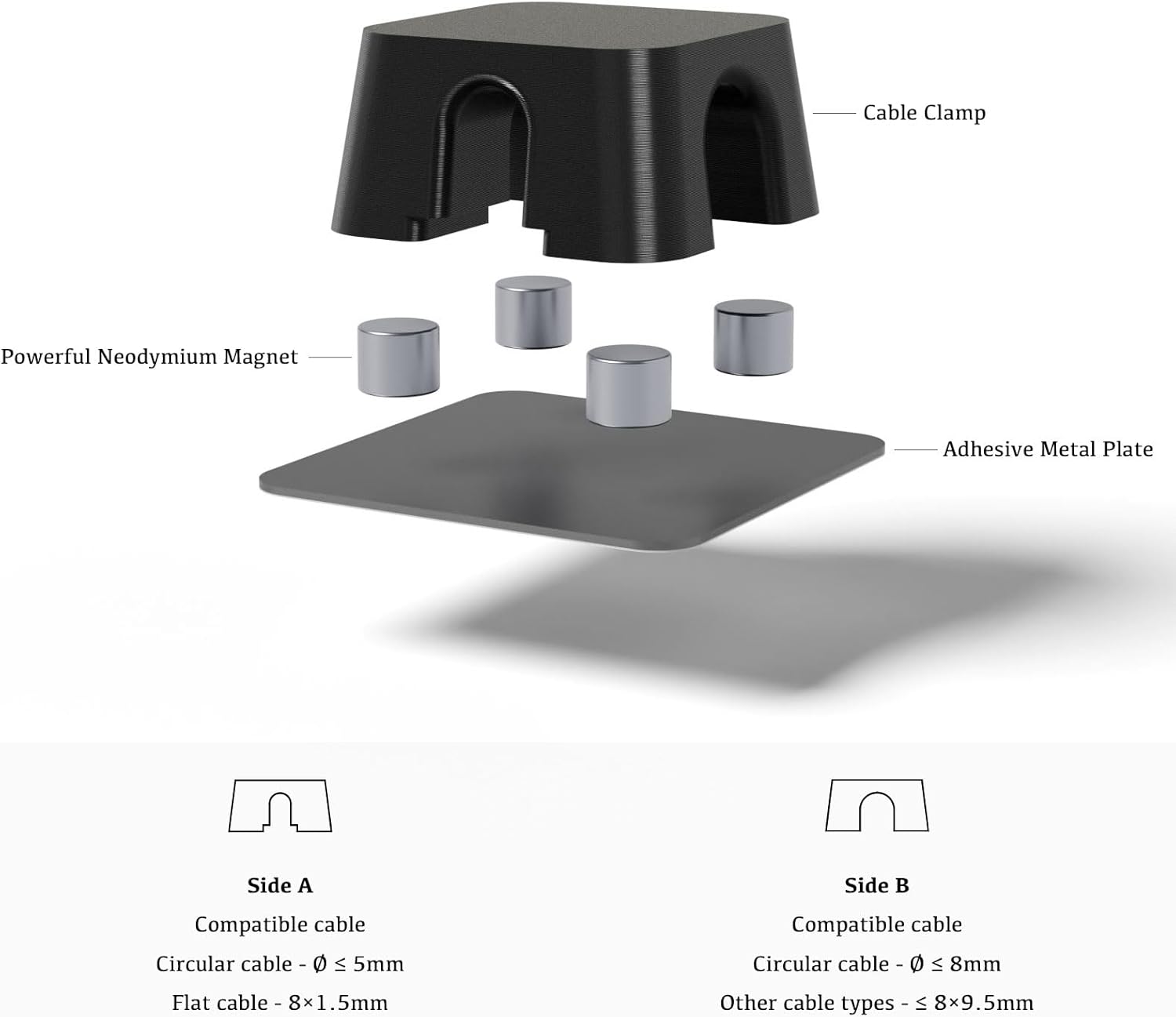 - Strong Magnetic Hold - Each organizer has high-strength neodymium magnets embedded in its four feet, ensuring a secure hold and preventing cable movement.