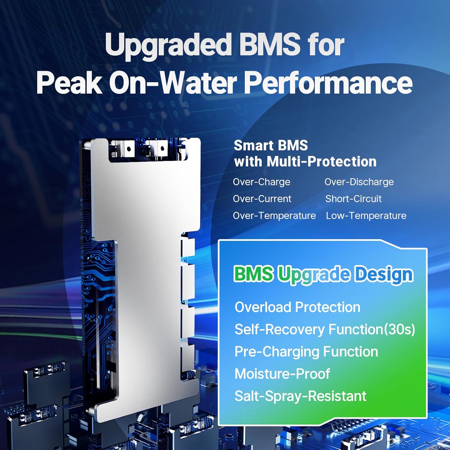 - ăADVANCED BMS PROTECTIONăLifepo4 battery equipped with safeguards against overcharge, over-discharge, short circuits, and a low-temp cut-off for safe use in all conditions.