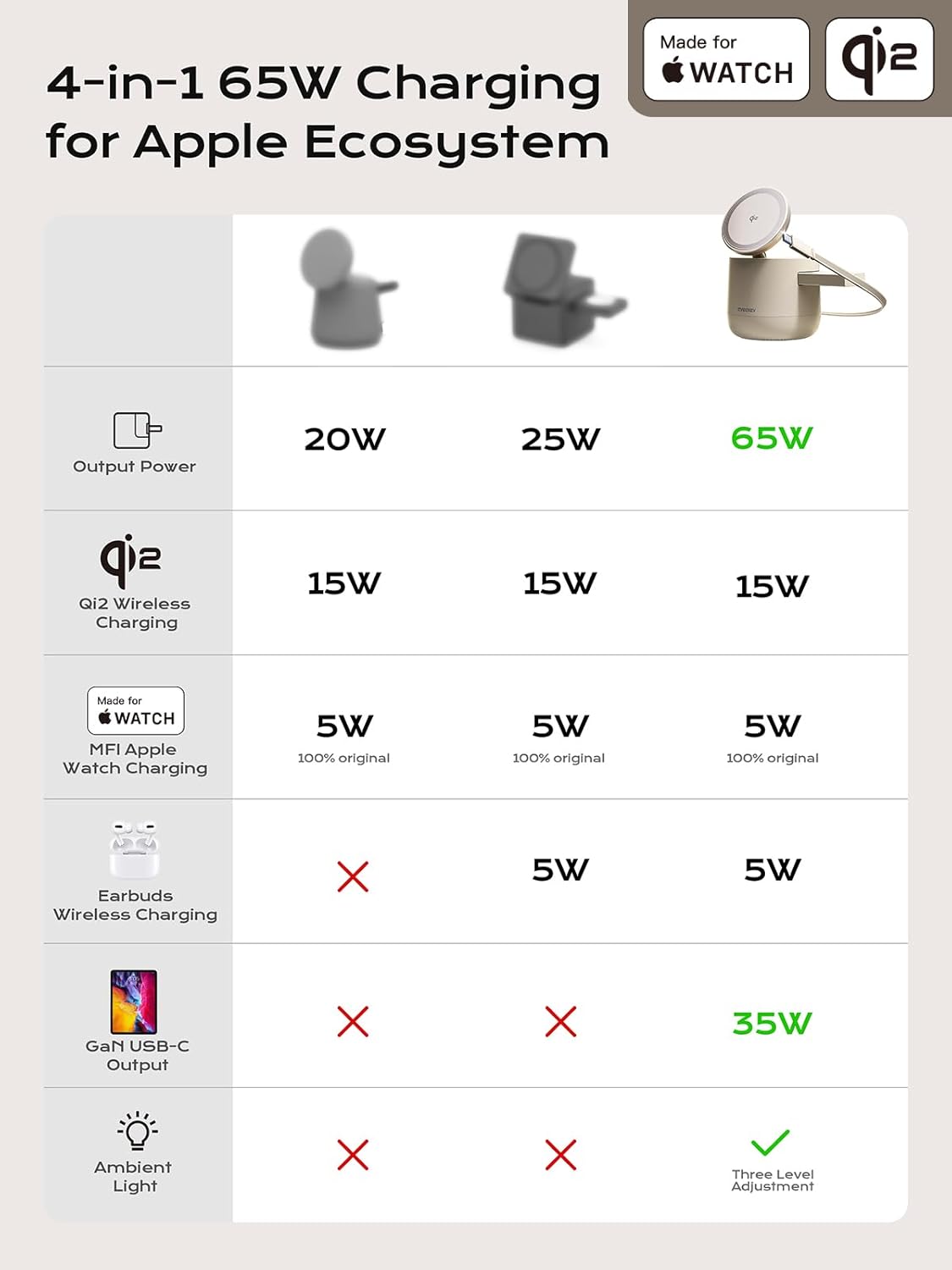 - Special Feature : 65W PD Adapter with 5ft Braided Cable included, Advanced AI Intelligent Chips Control Core,Skin-friendly Touch, Distinctively Elegant Design, Exclusive 3FT Retractable Cord & Relaxing Ambient Light, Magsafe Compatible & Made for Apple Watch, Qi2 Certified 15W Wireless Fast Charging 65W PD Adapter with 5ft Braided Cable included, Advanced AI Intelligent Chips Control Core,Skin-friendly Touch, Distinctively Elegant Design, Exclusive 3FT Retractable Cor⌠See more