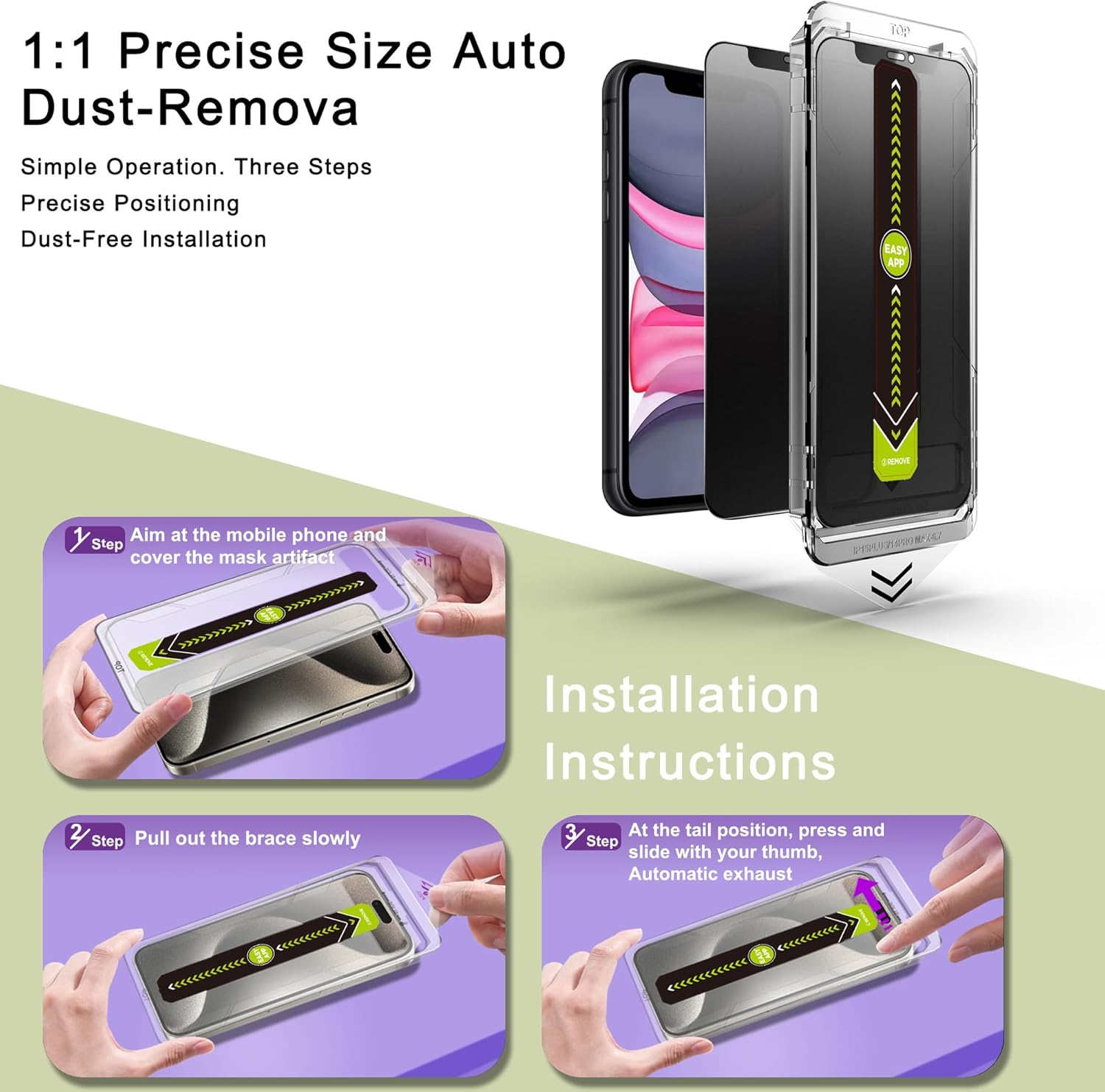 - Auto Dust Removal & Easy Installation: The SY SHANGYAN Matte Privacy Anti-Spy Screen Protector for iPhone 11/XR features advanced auto dust removal and self-aligning technology for a flawless,bubble-free install every time.Just place the frame,pull the tab,and press to push out any air bubbles.Installation is quick,easy,and hassle-free.For best results,watch our step-by-step installation video before applying