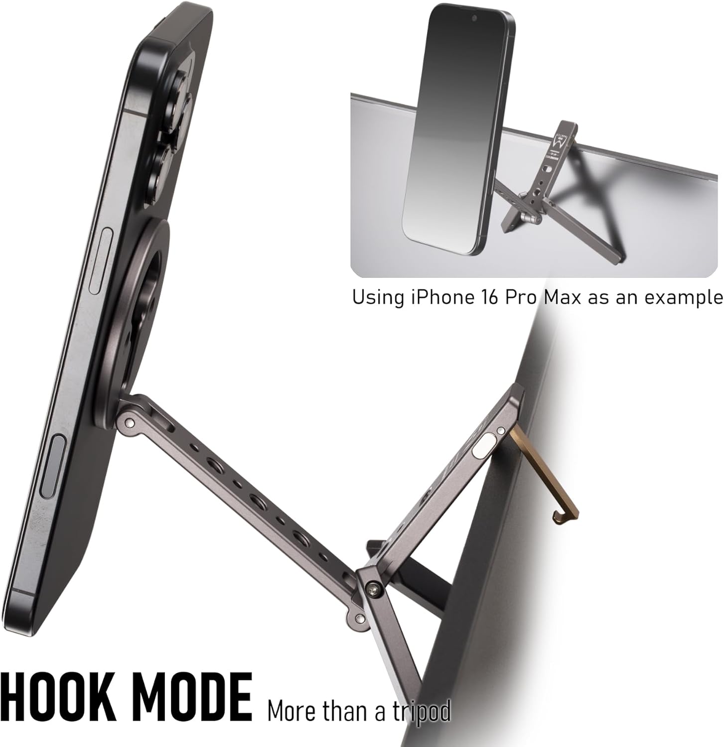 Magnetic Tripod for iPhone 12/13/14/15/16 & MagSafe Cases | Handy Phone Stand | 20 N52 Magnets Inside, Cold Shoe Mount, 1/4" Screw & Foldable Hook