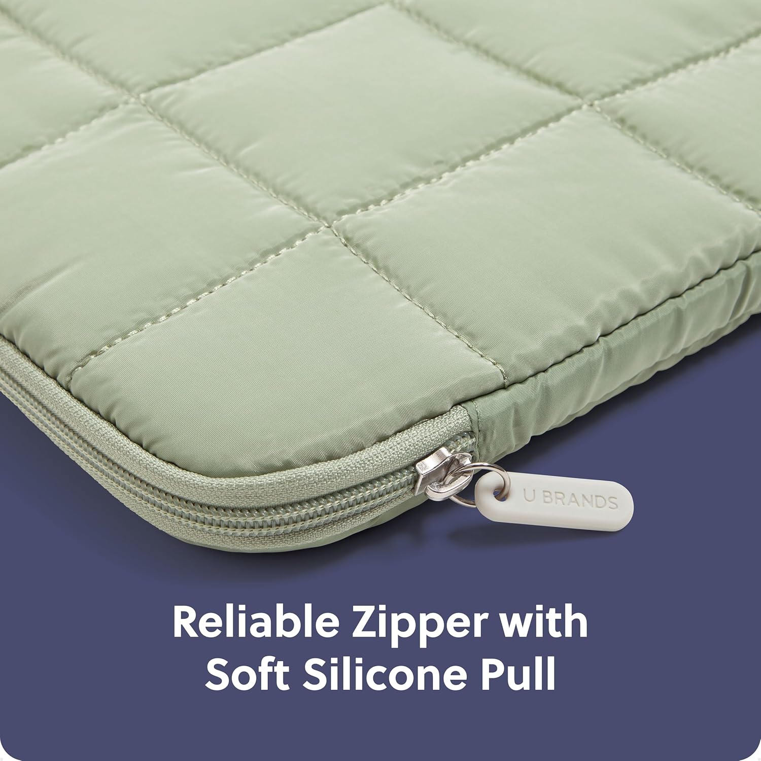 U Brands Nylon Puffer Zipping Large Laptop Sleeve, 10.5" x 15", Computer Accessories, Laptop Bag for MacBook Pro, MacBook Air, Chromebook, HP Computer, Matcha Green