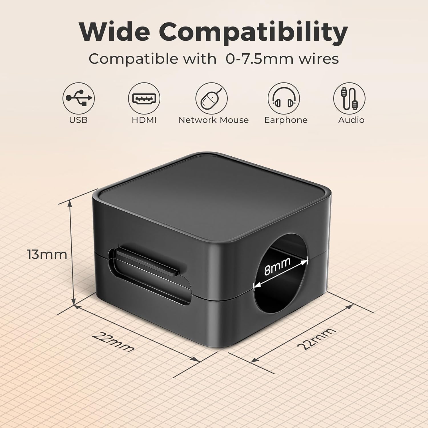 - WIDE COMPATIBILITY: Designed with 0.3 inches (7.5 mm) diameter slot, our magnetic cord organizer securely holds most cables, including USB, HDMI, Type-C and more.