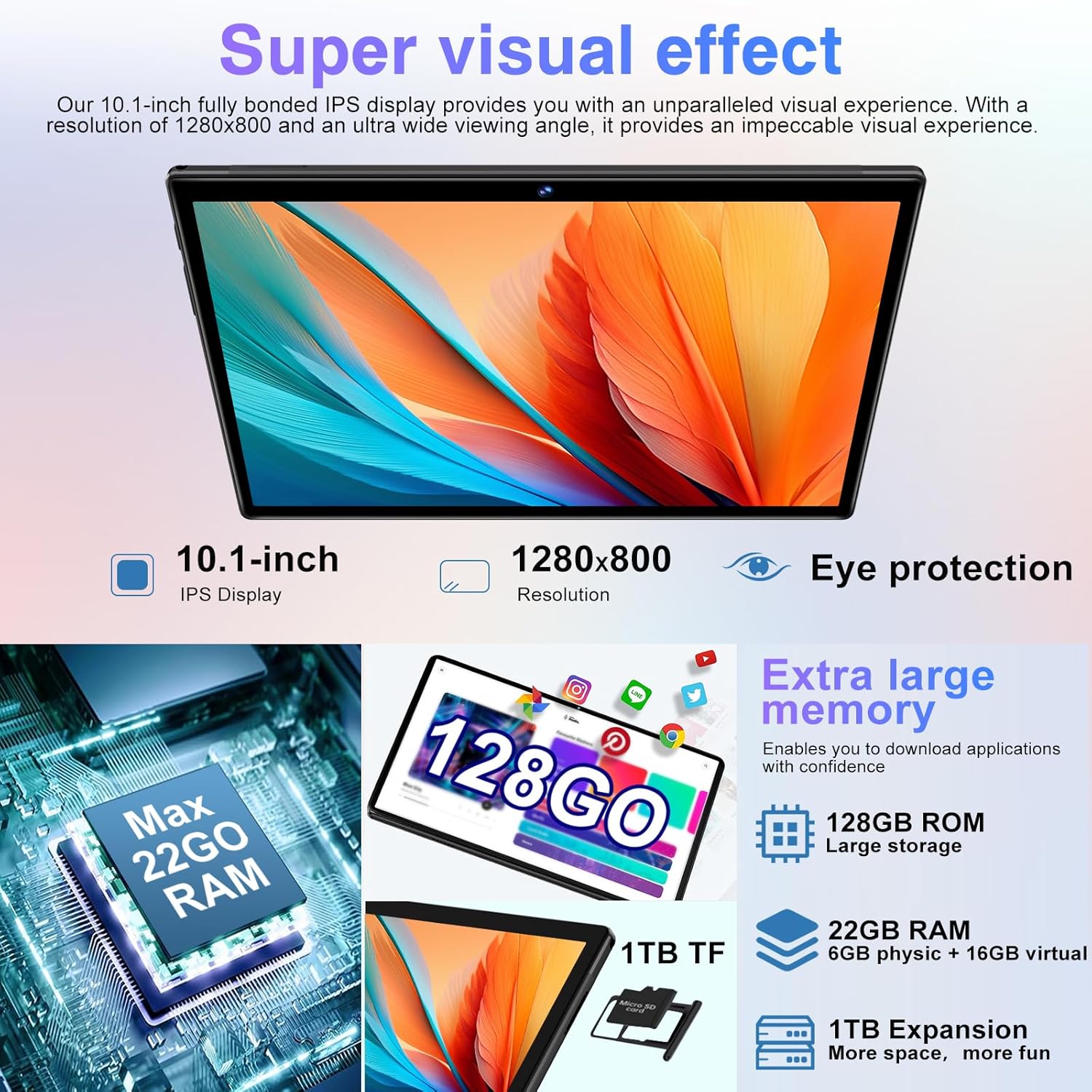 - 【 22(6+16)GB RAM + 128GB ROM+ 1TB TF 】 This tablet combines 22GB RAM (6GB physical + 16GB virtual). It also includes 128GB of internal storage, expandable by up to 1TB ROM via a microSD card. This setup allows for smooth performance, making it ideal for reading, gaming, and professional tasks.