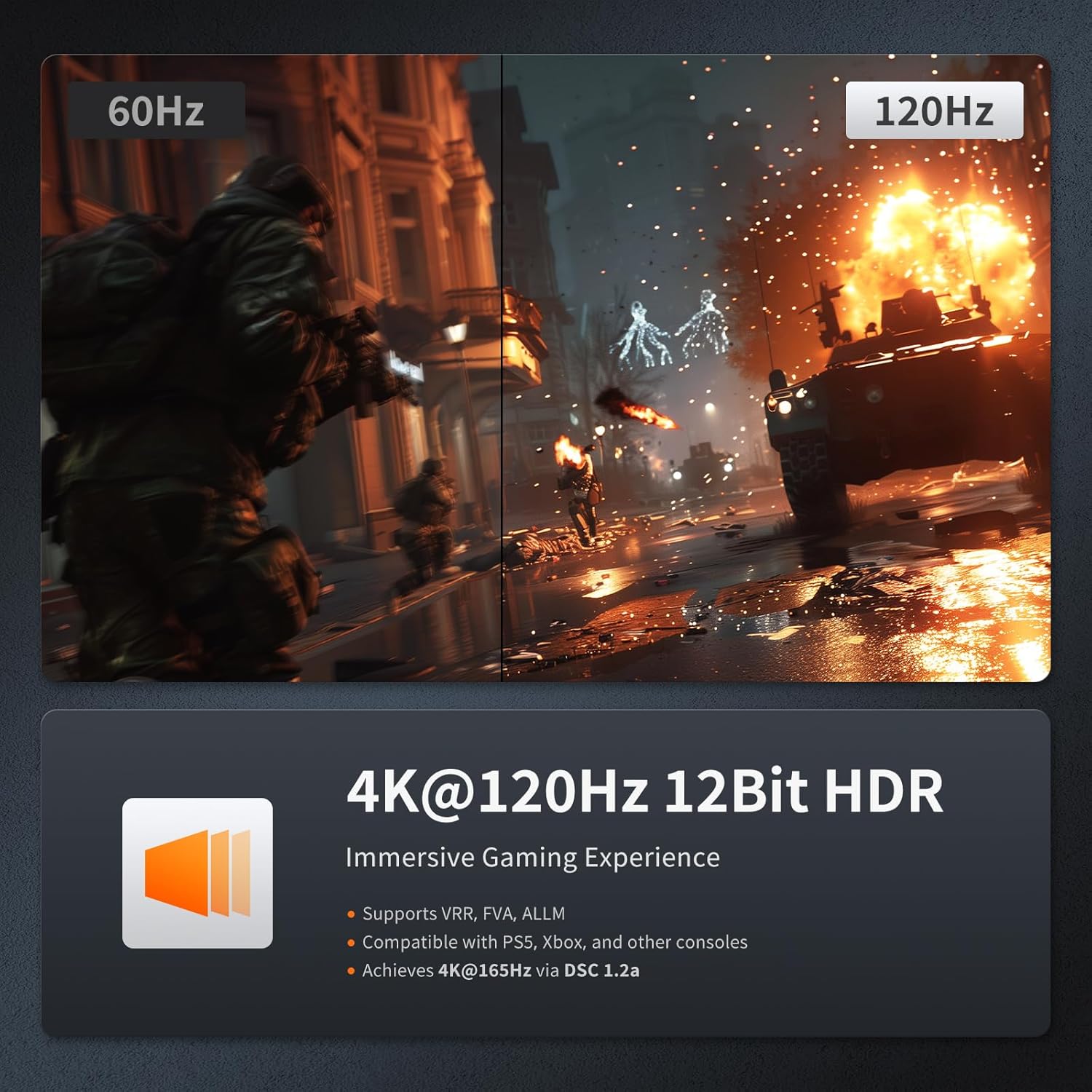 - ăStunning 8K Visuals & HDMI 2.1 SupportăSupports 8K@60Hz 4:4:4 and 4K@120Hz/144Hz resolutions with HDMI 2.1 (48Gbps). Compatible with VRR, FVA, ALLMâperfect for gaming, video editing, and high-res displays
