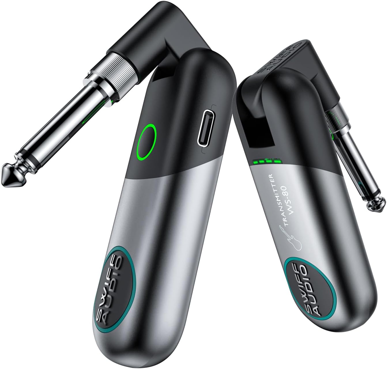 - Wireless Freedom: Guitar wireless system features clear and stable signal transmission with a range of up to 100-150ft and latency of less than 2ms. Mini wireless guitar transmitter eliminates messy cables and gives you the freedom to perform at gigs!