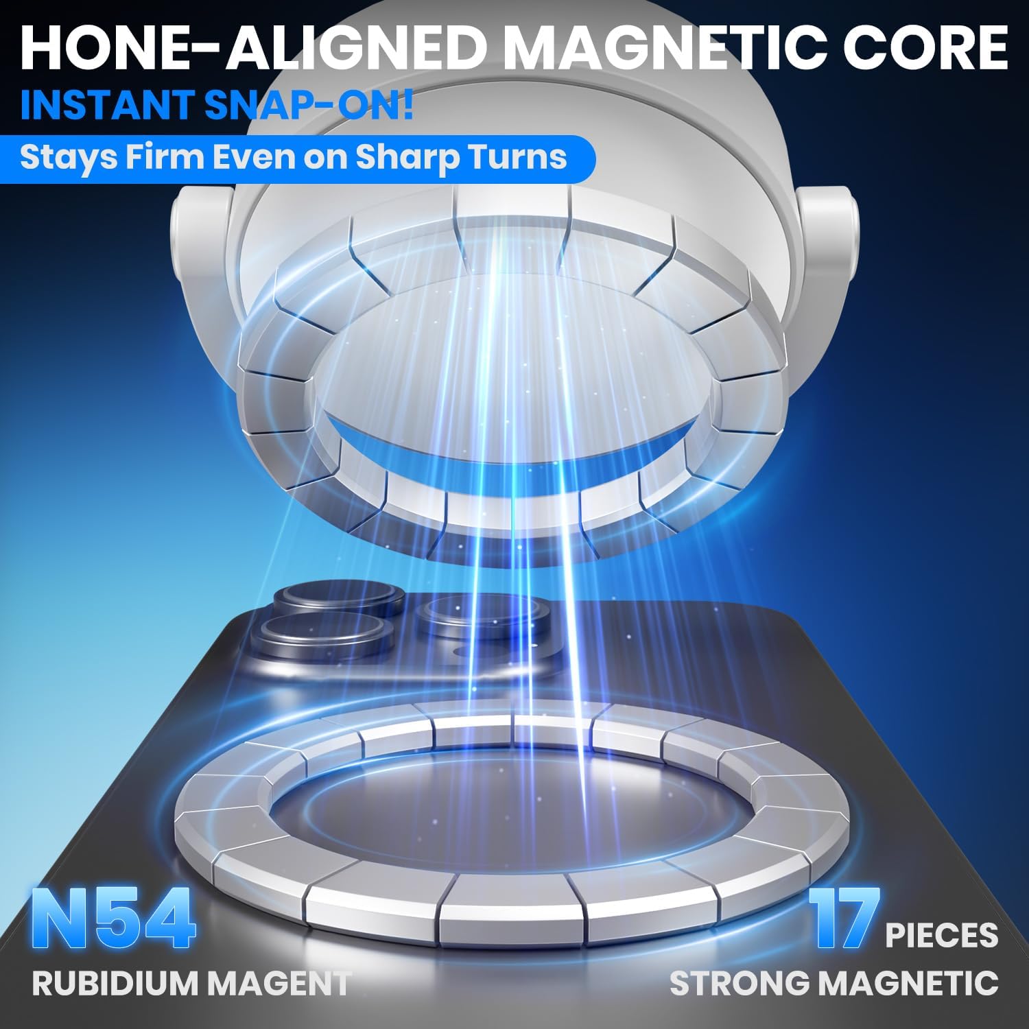 - Stronger Magnetic and Clamping Dual Function: With 22 high-performance N55 magnets, this mount's magnetic strength is 200% stronger than standard magnets, providing a top-tier hold with up to 2400gf of force. It can support the weight of up to 50 phones. If your phone is not an iPhone or does not support magnetic suction, our phone holder also supports clamping function. After 5000 vibration tests and extreme road simulations, your phone stays secure during bumps, sudden stops, or sharp turns. The precision magnetic design ensures strong adhesion Without disrupting phone signals for clear navigation and calls