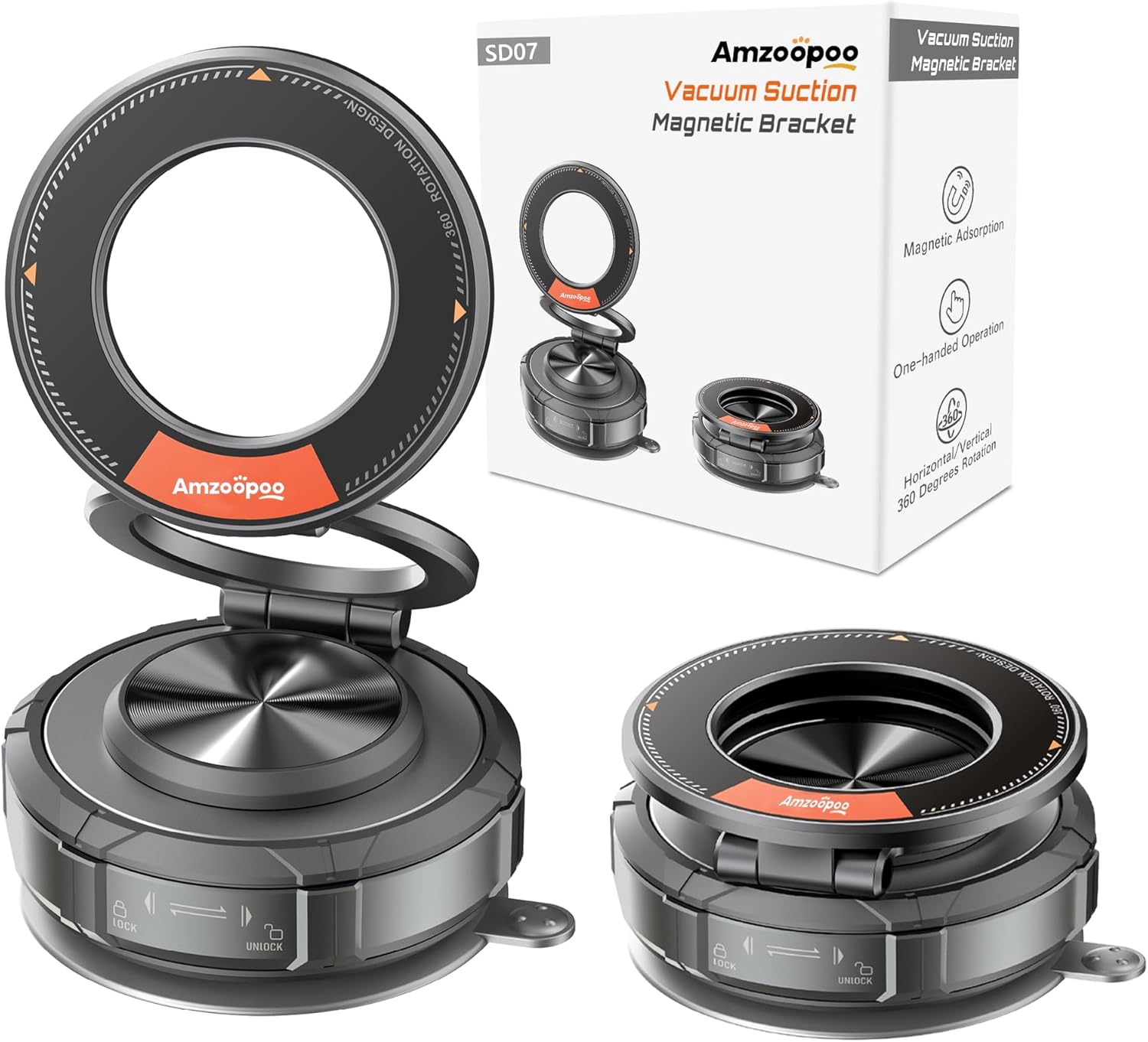 - Strong Suction & Stable Hold: This Amzoopoo car phone bracket uses advanced rotating-lock vacuum suction, boosting suction compared to traditional press-on mounts. It stays stable on bumpy roads or during sudden stops.