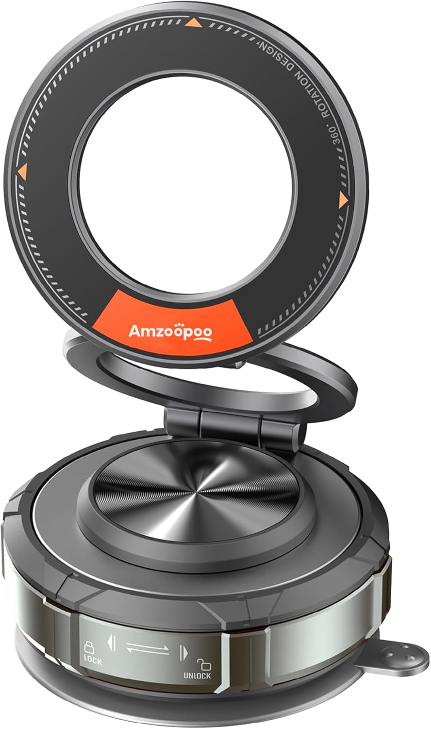 - Easy to Use Anytime: The Amzoopoo Vacuum Magnetic cellphone Mount is different from traditional magnetic phone holders and electric vacuum suction mounts. It requires no charging and operates silently. Simply twist the dial clockwise to securely attach it to any smooth surface, and twist it counterclockwise to easily remove it without leaving any residue. You can switch installation locations freely. It is definitely more than just a phone holder for car dashboard, windshield, center console screen. Pocket-sized and foldable, it can also be used as a magnetic phone holder in the kitchen, gym, office,and other indoors.