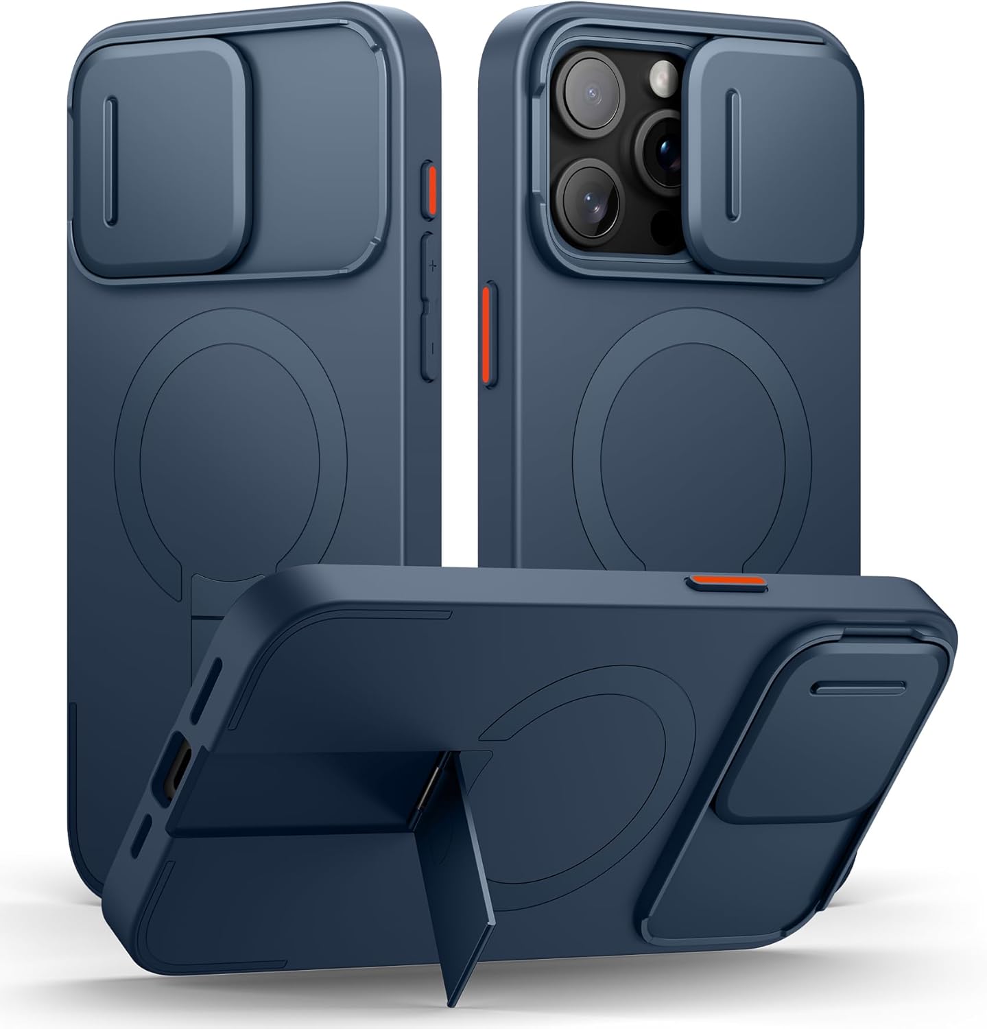 SURITCH for iPhone 15 Pro Max Case with Magnetic Camera Slide Cover and Adjustable Kickstand, Compatible with MagSafe, Shockproof Bumper Case Slim Protective Cover 6.7 Inch, Blue