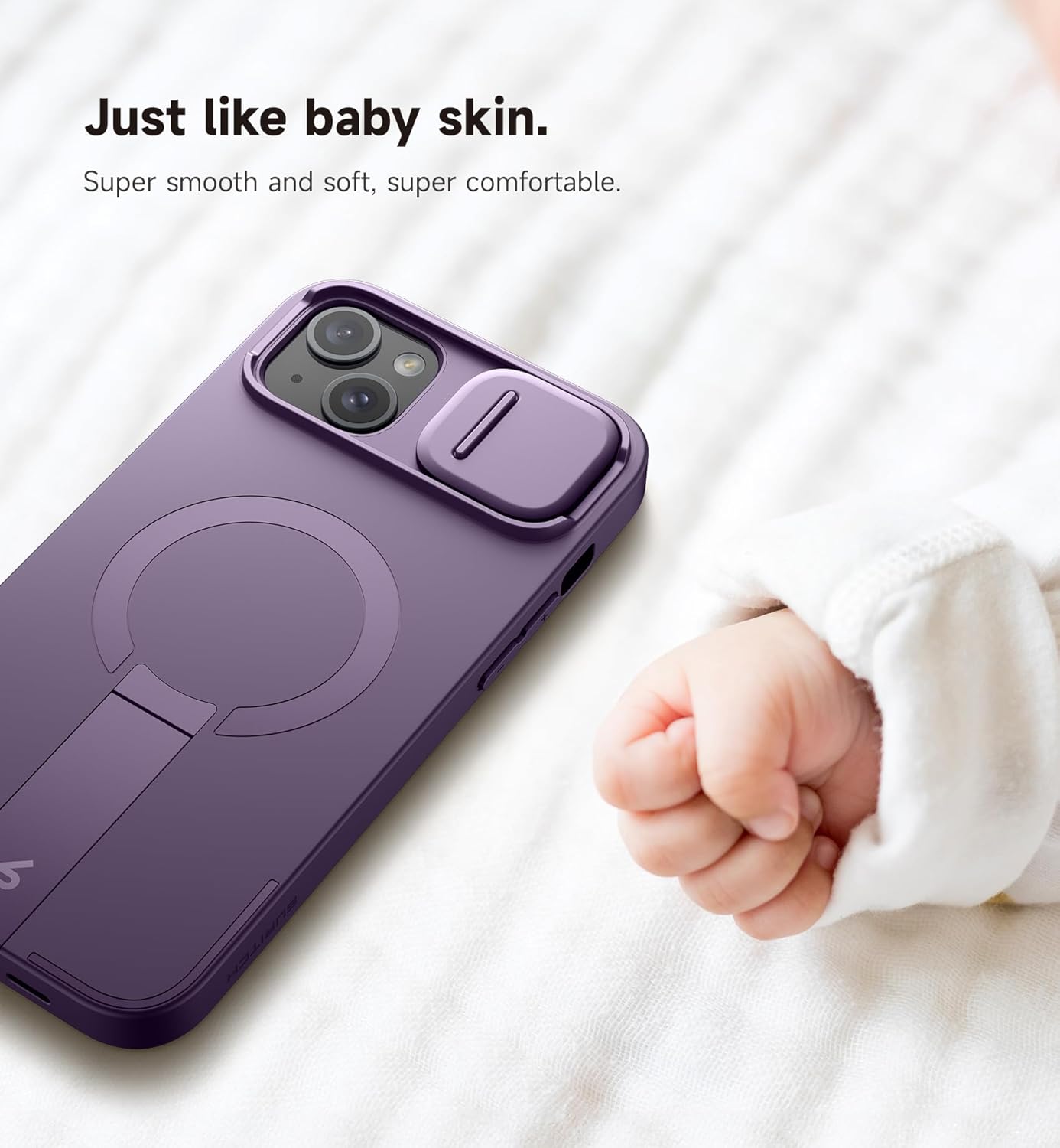 SURITCH for iPhone 14 Plus/15 Plus Case with Magnetic Camera Slide Cover and Adjustable Kickstand, Compatible with MagSafe, Shockproof Bumper Case Slim Protective Cover 6.7 Inch, Dark Purple