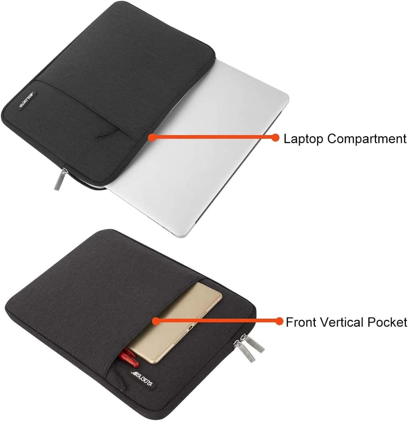 - Made with polyester material, a top opening zipper gliding smoothly and allows convenient access to your device. Slim and lightweight, does not bulk your device up and can easily slide into your briefcase, backpack or other bag.