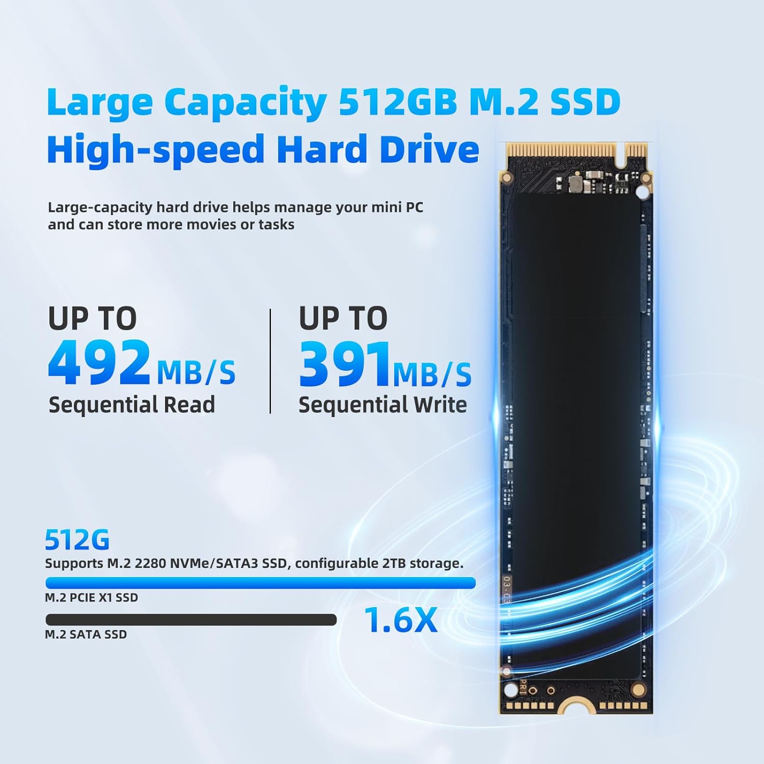 - Massive & Expandable Storage (512GB SSD + 2.5" Bay): Enjoy lightning-fast boot-ups and file access with the pre-installed 512GB M.2 2280 SSD. Easily expand your mini computer storage by upgrading the M.2 SSD (up to 2TB) or adding a 2.5-inch SATA SSD (not included) for massive capacity.