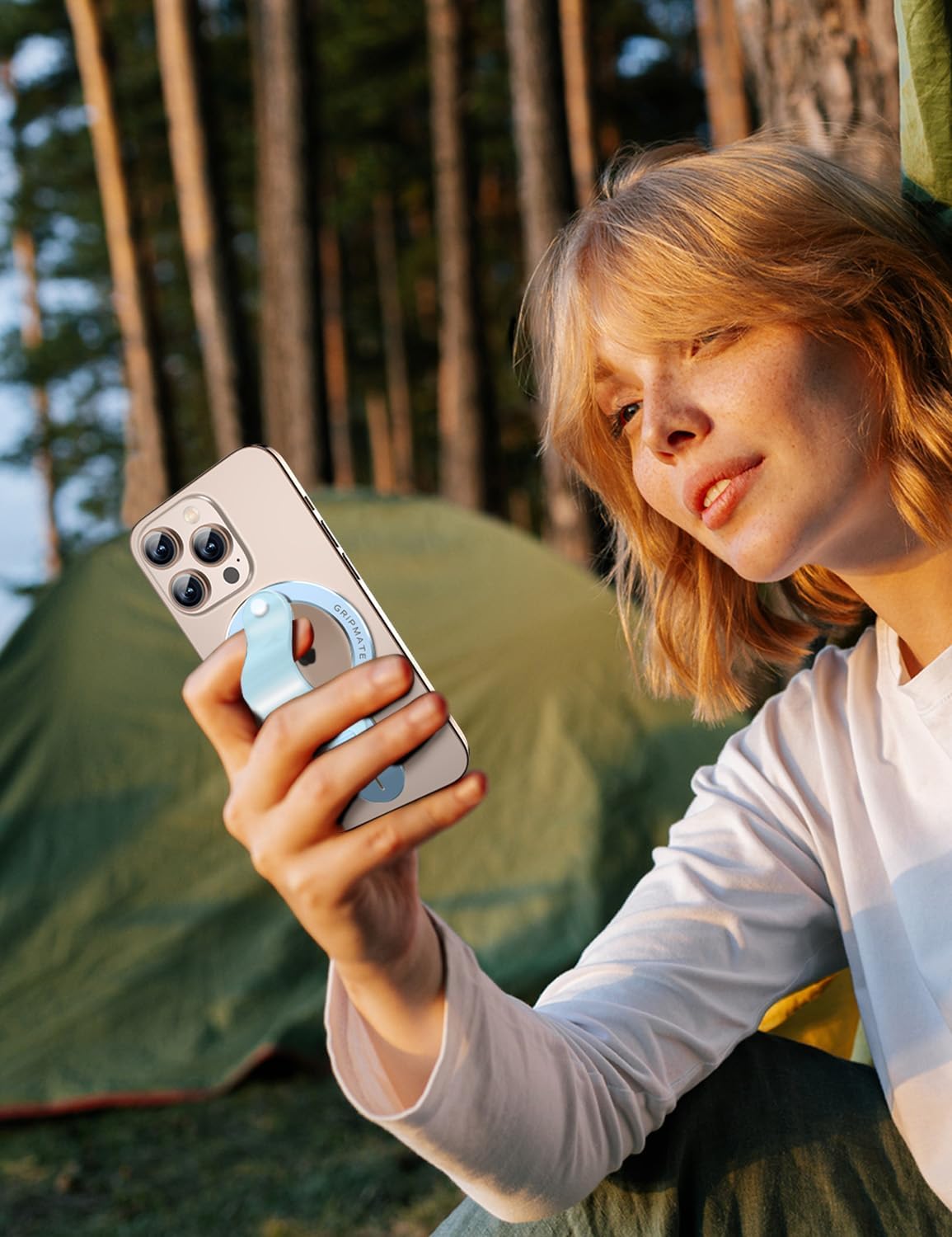 - 【Convenient, Easily pop on & off】: Enhance your phone experience with GripMate MagSafe accessory, compatible with iPhone 16 series (also suits iPhone 15/14/13/12 series). for Gripmate Ring Holder is the perfect choice for selfies, social media scrolling, and engaging video calls. Its ergonomic design makes one-handed use effortless and prevents slipping. The Gripmate magnetic loop grip, made from skin-friendly silicone, Easily pop on & off your Mag Safe phone loop holder for a wireless boost