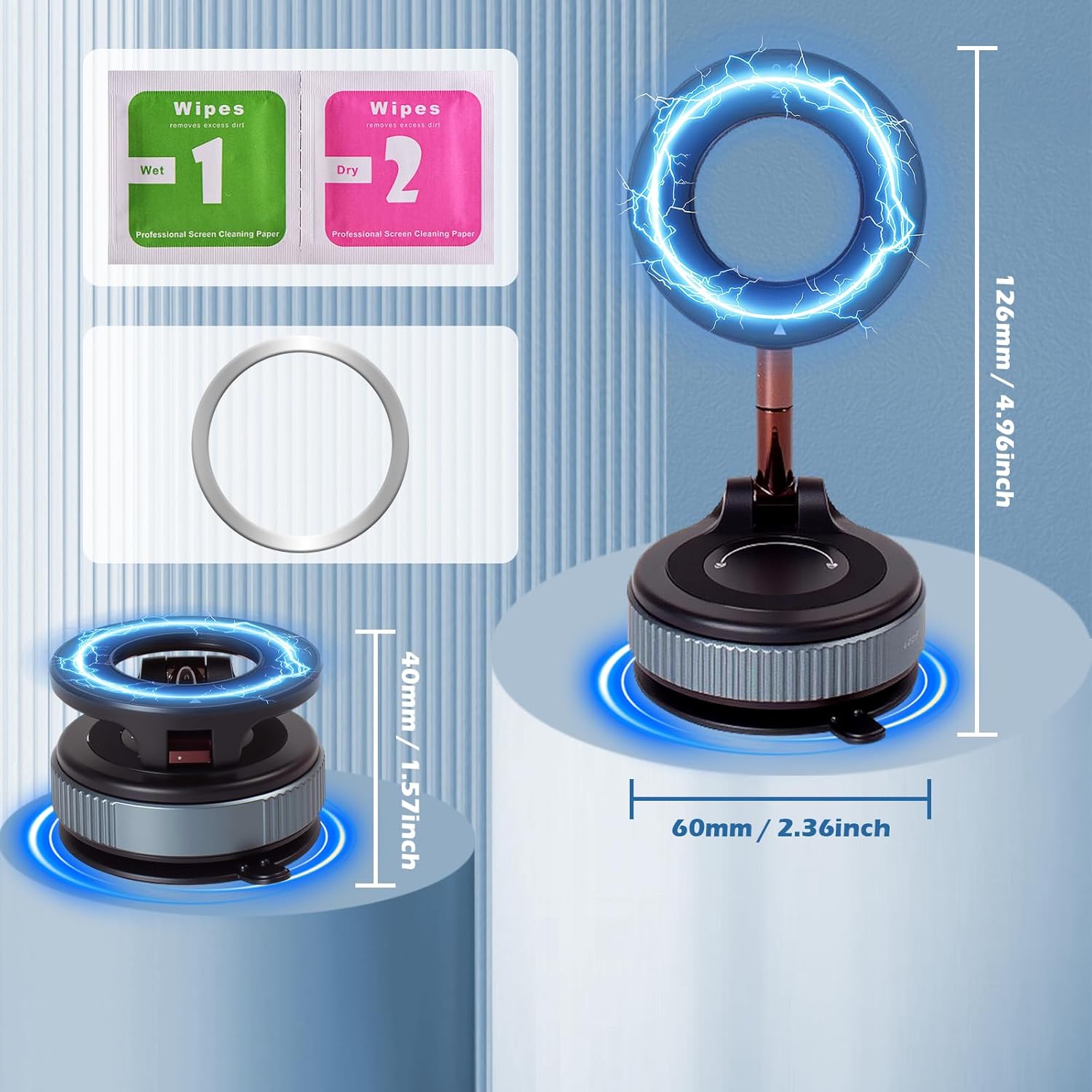 2025 Premium 360° Magnetic Car Phone Mount - Ultra-Strong Vacuum Suction for iPhone 16 Pro Max/Android - Foldable Adjustable Holder for Car/Truck/Gym/Home - Secure No-Slip Design (Black)