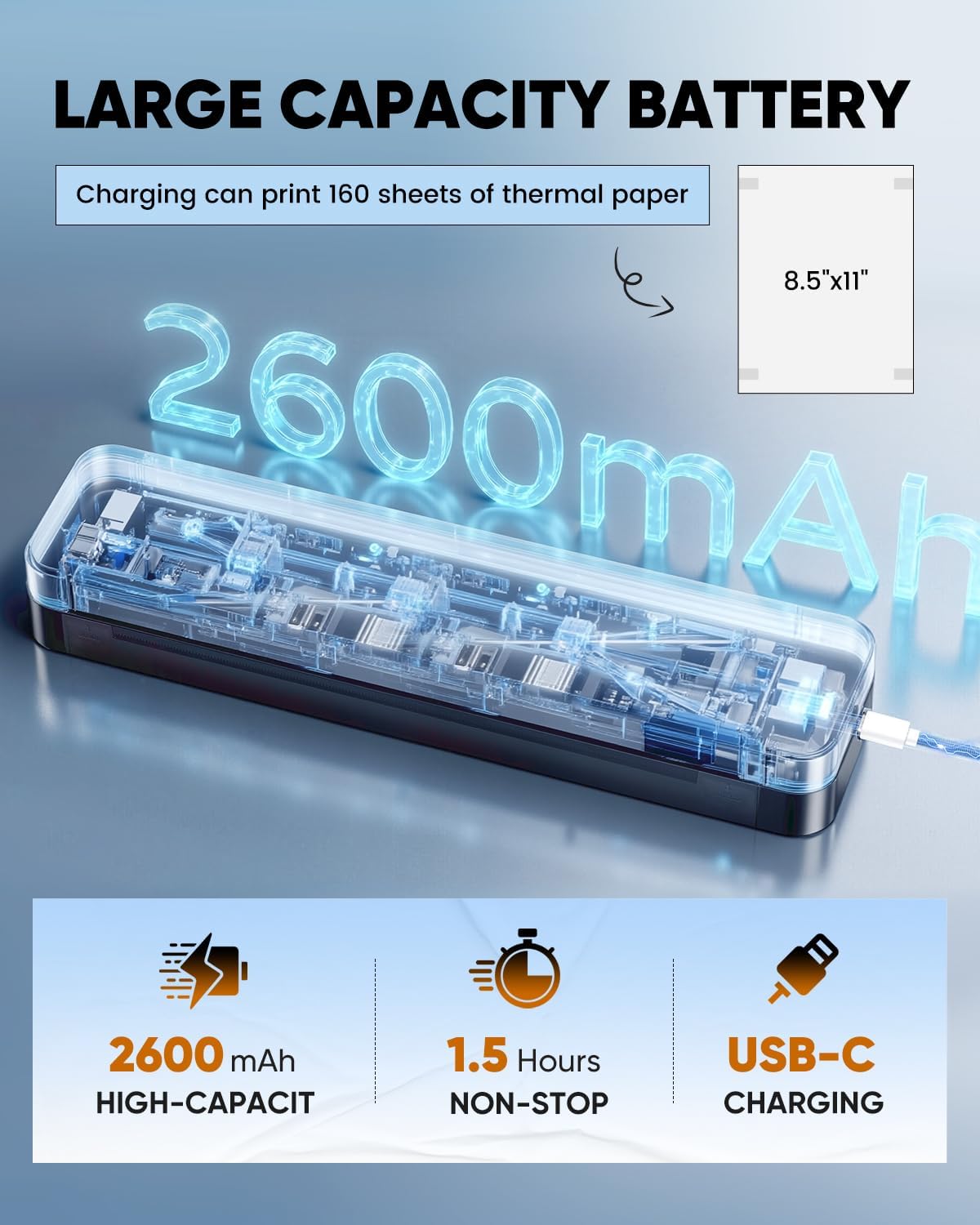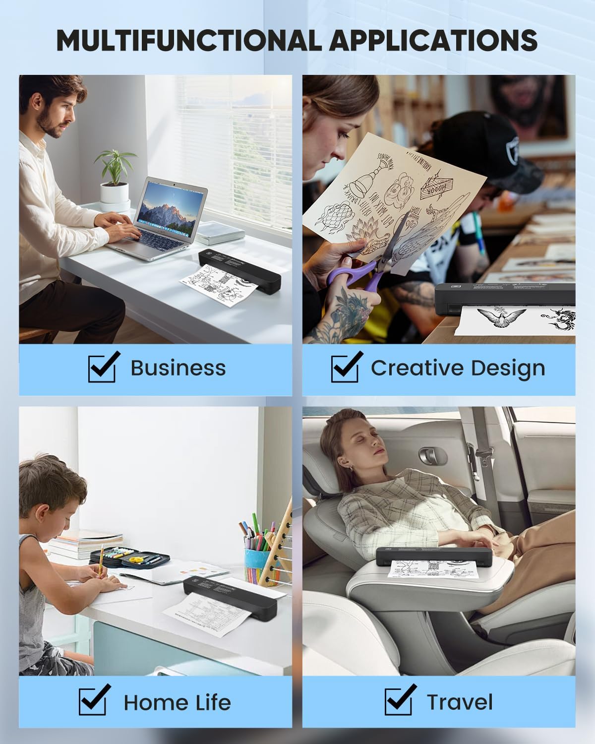 - 【High-Quality Printing and Easy Connection】Boasting 300 DPI clear printing, it's an ideal choice for mobile notaries, truck drivers, business travelers, office workers, teachers, and students. Connecting your phone is a breeze: download the APP as per the user manual, turn on the printer and enable wireless connectivity on your phone, then click the "Printer" icon in the App to search, connect, and start printing. For laptops and PCs, download and install the driver, connect with the USB-C cable, and start printing. Additionally, cleaning the print head is simple - just use alcohol wipes to clean the print head assembly, especially areas with black lines.
