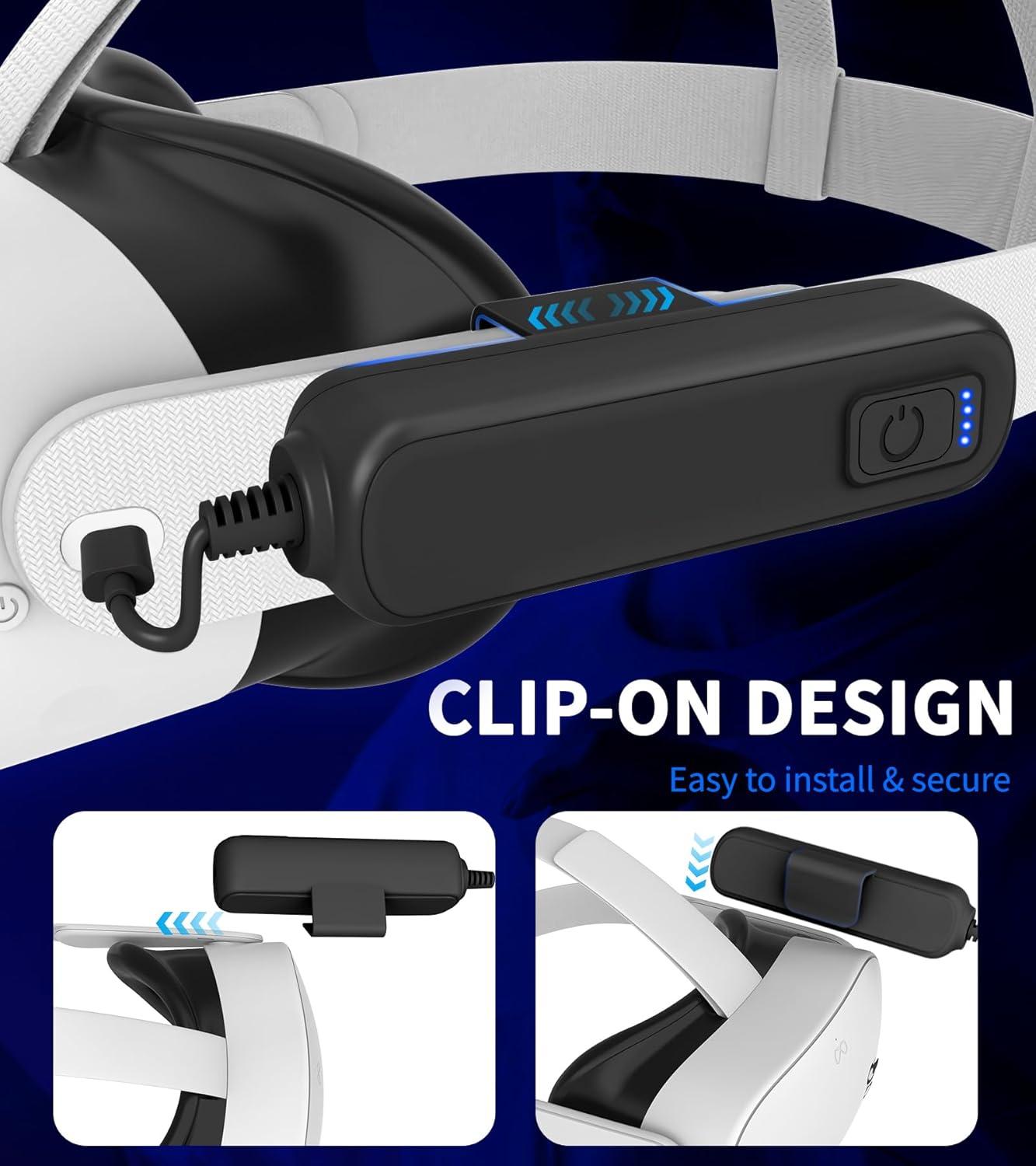 - Secure Clip-On Design & Widely Compatible: Designed specifically for Meta Quest 2/3/3S, Our battery pack features a clip-on power bank design for easy installation. Ensuring a firm fit that won't easily fall off, the pack securely fits the headset without obstructing the headphone jack, providing a hassle-free charging experience.
