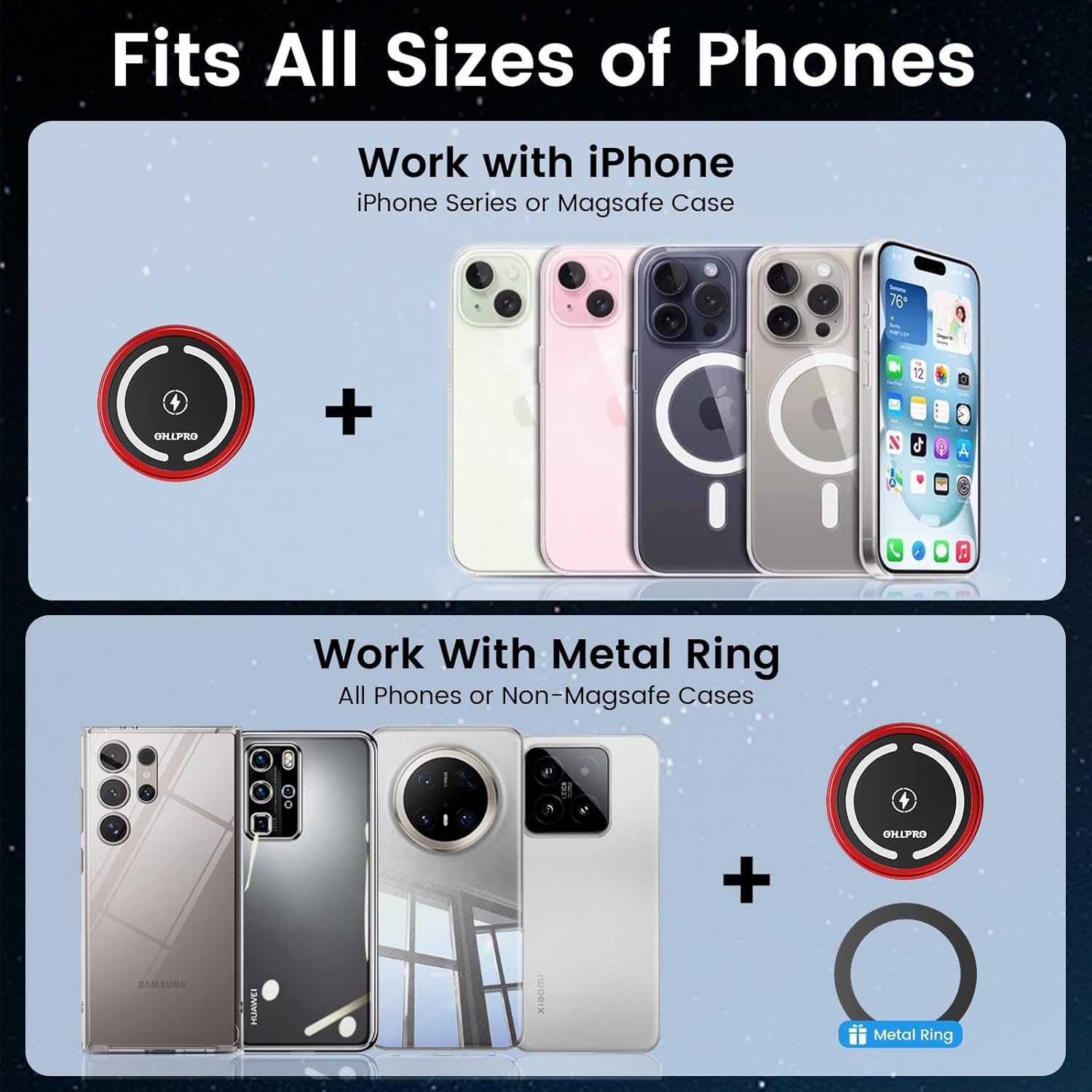 - 15W Fast Charging with for Magsafe - Designed for iPhone 16/15/14/13/12 series, this for Magsafe car charger delivers 15W fast wireless charging with instant for Magsafe alignment. No more fumbling with cables—simply snap your phone onto the for Magsafe car mount charger and enjoy hassle-free power on the go.