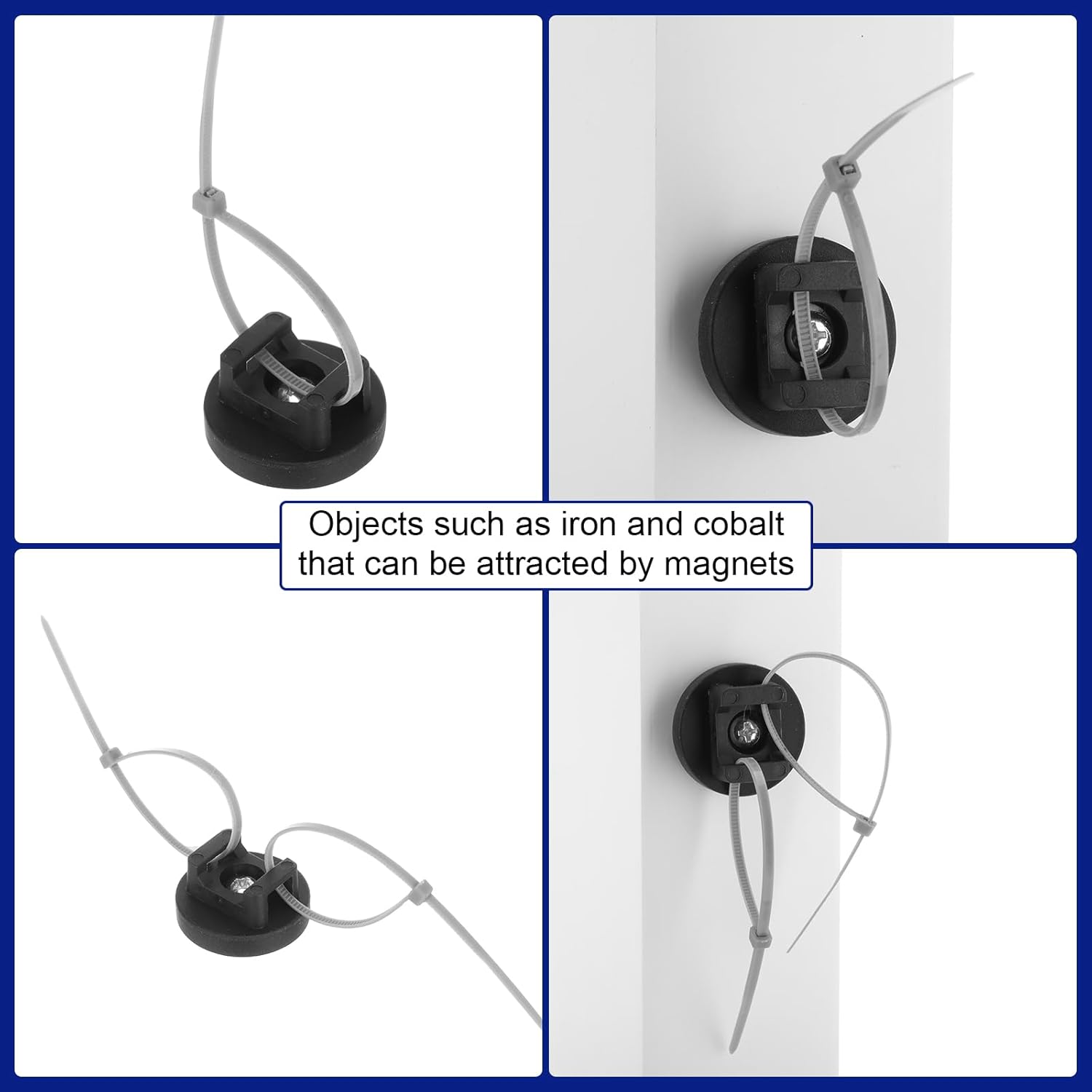 - Using Easily: the multipurpose magnet wire holders are convenient to use, just fix them on metal areas, insert the zip ties to attach the cables or wires, then tighten them and cut the excessive length; They are removable, and you can adjust the positions and angles as you need; But the zip ties are not included