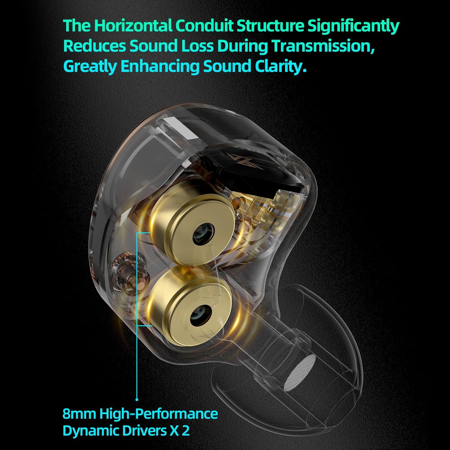 - 【New Horizontal Drivers Gaming Headphones】 These KZ earbuds Taurus place two dynamic drivers horizontally within the earbuds. Reduced distance between the drivers minimizes sound transmission loss, preserving natural sound with rich details. Two 8mm high-performance dynamic drivers deliver powerful deep bass vibrations, maximizing the in ear monitors' audio performance. Surround sound enables precise sound localization in FPS or MOBA games, enabling you to control over the game.